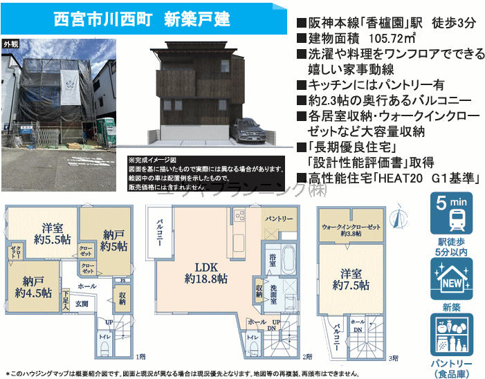 | 特色 | 【川西町新築戸建】香櫨園小学校、浜脇中学校、駐車場有、駅徒歩3分。 | ||