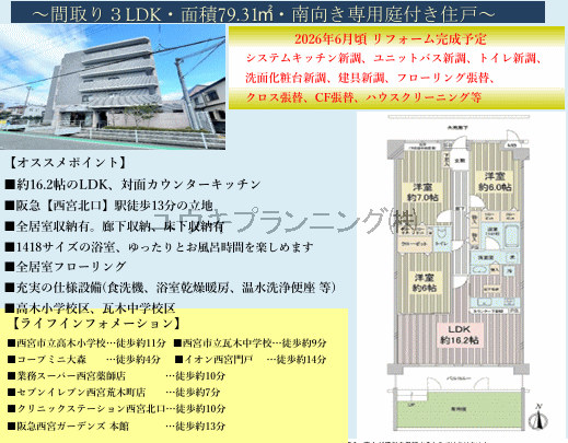 | 交通 | 阪急神戸線 西宮北口駅 徒歩12分 | 学区 | 高木小学校 瓦木中学校 |