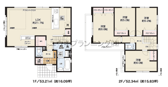 | 間取詳細 | 洋6.8、洋6、洋5.2、洋5.2、LDK21.7 |