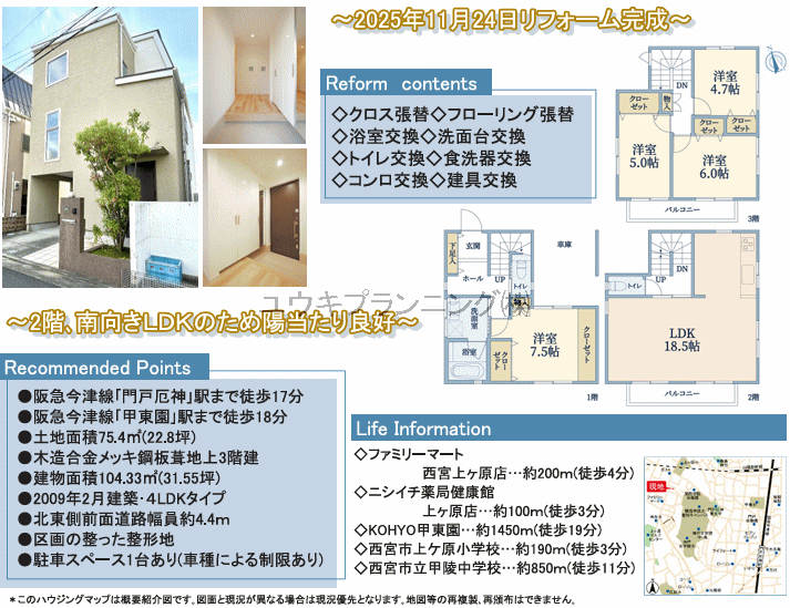 | 間取詳細 | 洋7.5、洋6、洋5、洋4.7、LDK18.5 |
