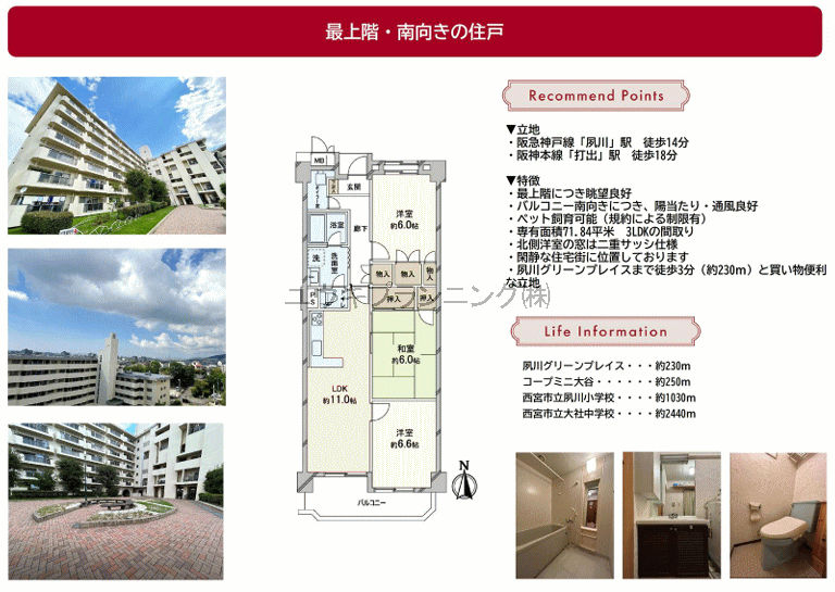 | 特色 | 北東角部屋、日当たり良好、ペット飼育可。 |