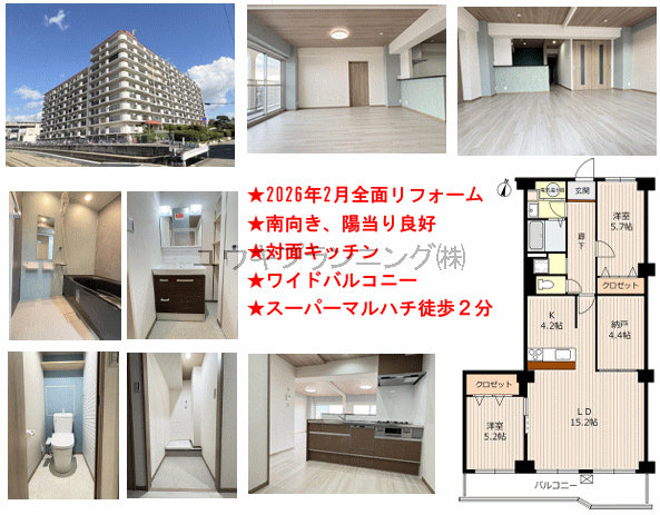 | 間取詳細 | 洋5.7、洋5.2、LDK19.4、納戸4.4 |