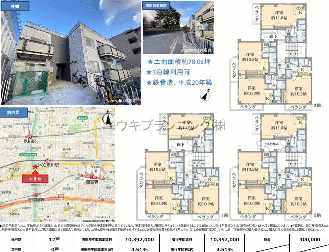 駅近物件、、オーナーチェンジ、公営水道、公共本下水、都市ガス、電気。