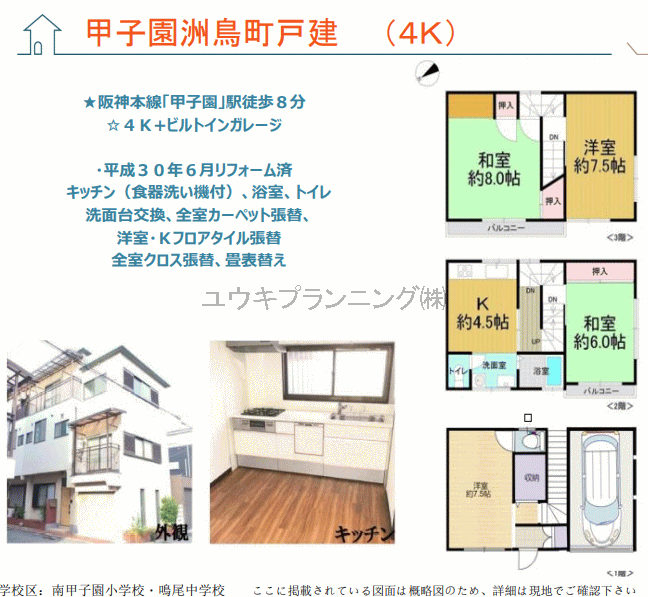 【甲子園洲鳥町中古戸建】南甲子園小学校、鳴尾中学校、駐車場有、最寄駅まで徒歩10分以内閑静な住宅街。 |
