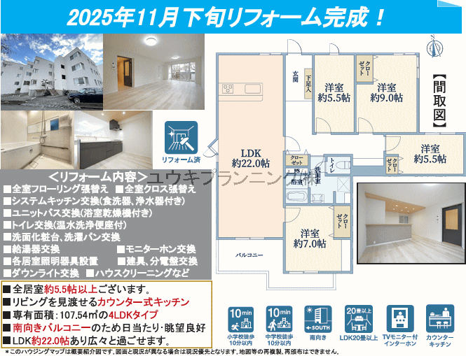リフォーム済、角部屋、駐車場有、日当たり良好