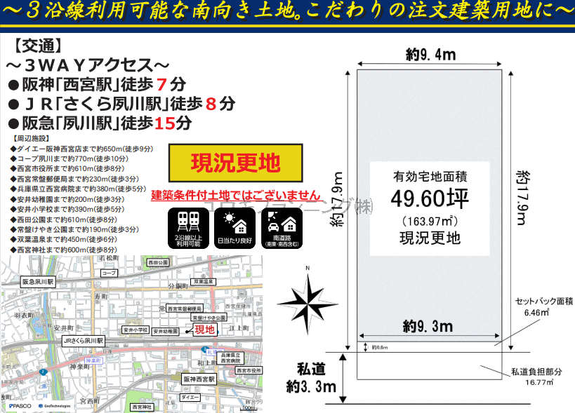 夙川駅 徒歩15分 西宮駅 徒歩7分 |