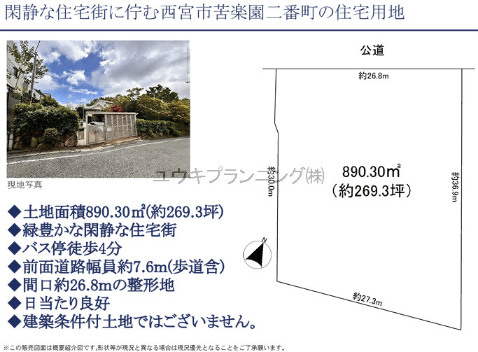 整形地、建築条件なし、閑静な住宅街、日当たり良好。 |