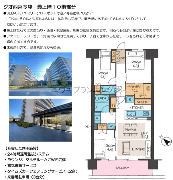 【ジオ西宮今津】今津小学校・今津中学校、日当たり良好、駐車場有、エレベータ、閑静な住宅街、最上階。