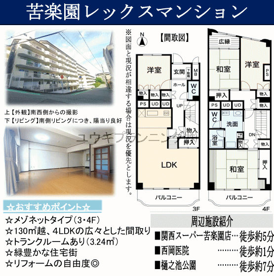 【苦楽園レックスマンション】北夙川小学校、苦楽園中学校、メゾネットタイプ、トランクルーム、南向き、日当たり良好、閑静な住宅街、徒歩圏内にスーパー有。 |
