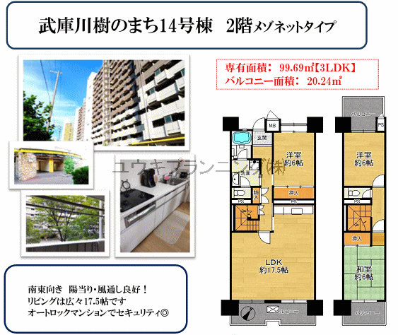 【武庫川樹のまち第一第14号棟】高須西小学校、鳴尾南中学校、メゾネットタイプ駐車場有、エレベータ、通風良好、日当たり良好、オートロック、緑豊かな棟です。 |