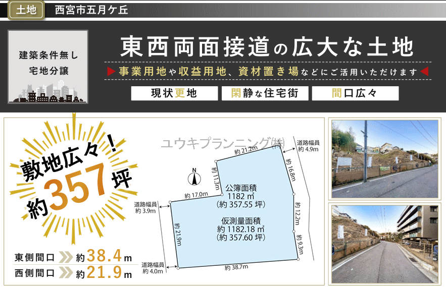 【五月ヶ丘土地】甲陽園小学校、上ヶ原中学校、建築条件なし、更地、日当たり良好、閑静な住宅街です。 |