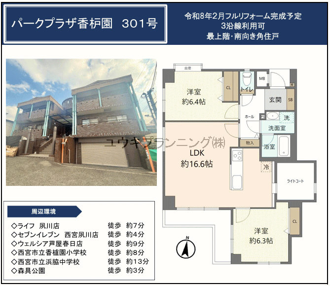 【パークプラザ香櫨園】香枦園小学校・浜脇中学校、2月リフォーム完成予定、最上階、角部屋、日当たり良好、通風良好、駐車場有、閑静な住宅街。 |
