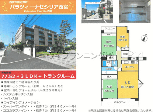 【パラツィーナセシリア西宮】段上小学校、甲武中学校、一部リフォーム済、南東向き、日当たり良好、通風良好。 |