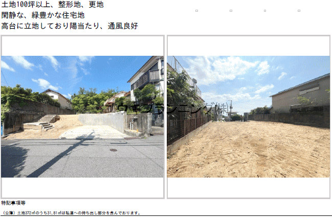 更地、建築条件なし、閑静な住宅街、眺望良好。