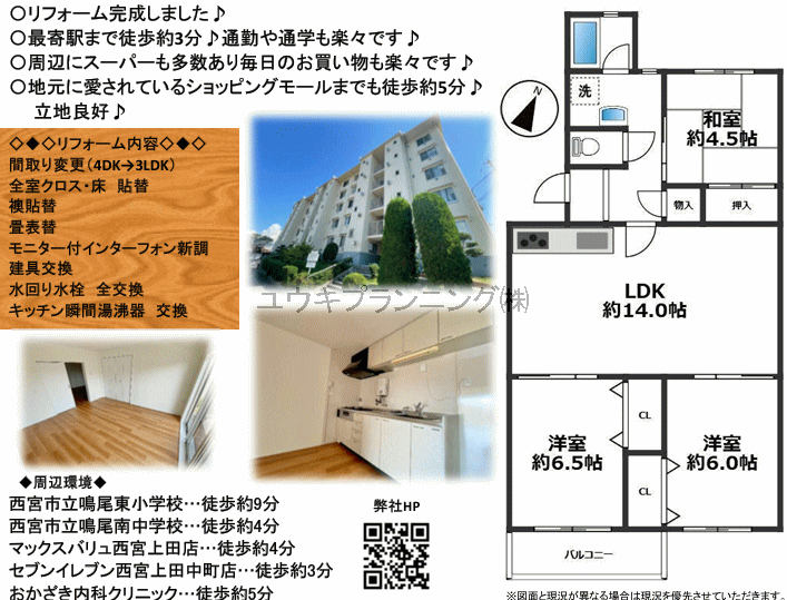 【上田東町住宅2号棟】鳴尾東小学校、鳴尾南中学校、リフォーム済、日当たり良好、総戸数50戸以上、1階部分、徒歩圏内にスーパー有、最寄駅まで徒歩10分以内、浴室窓有。 |