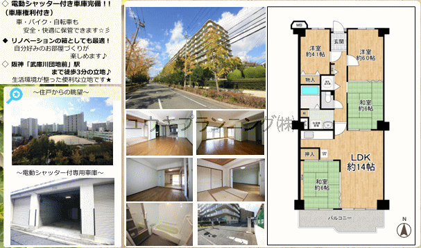 【ネオコーポ武庫川】鳴尾東小学校約967m、鳴尾南中学校約229m、駐車場有、エレベータ、日当たり良好、総戸数50戸以上、阪神武庫川線武庫川団地前駅まで徒歩2分、マックスバリューまで徒歩2分。 |