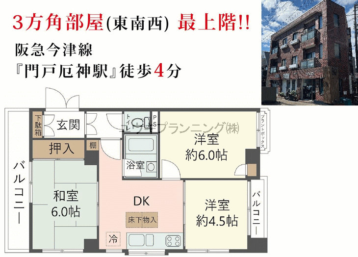 【ニューメゾン門戸】甲東小学校・甲陵中学校、3方角部屋、最上階、日当たり良好、閑静な住宅街人気の校区。 |