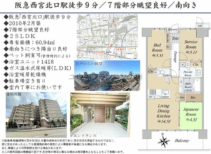 西宮北口駅 徒歩8分 西宮駅 徒歩12分 |