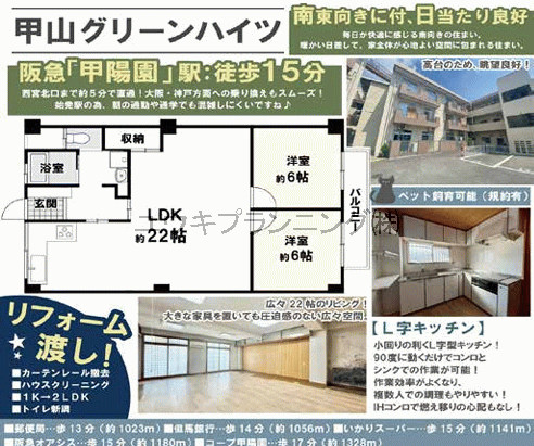 【甲山グリーンハイツ】甲陽園小学校、大社中学校、閑静な住宅街、リフォーム渡し、ペット可。 |