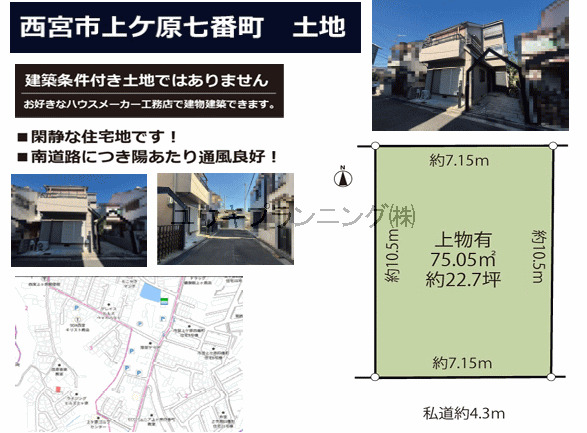 【上ヶ原七番町土地】上ヶ原南小学校、上ヶ原中学校、閑静な住宅街、建付土地、建築条件なし、日当たり良好。 |