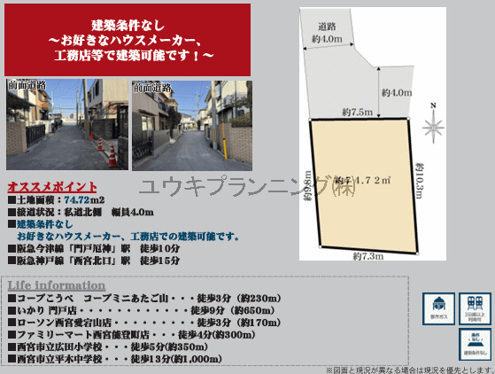 西宮北口駅 徒歩15分 門戸厄神駅 徒歩10分 |