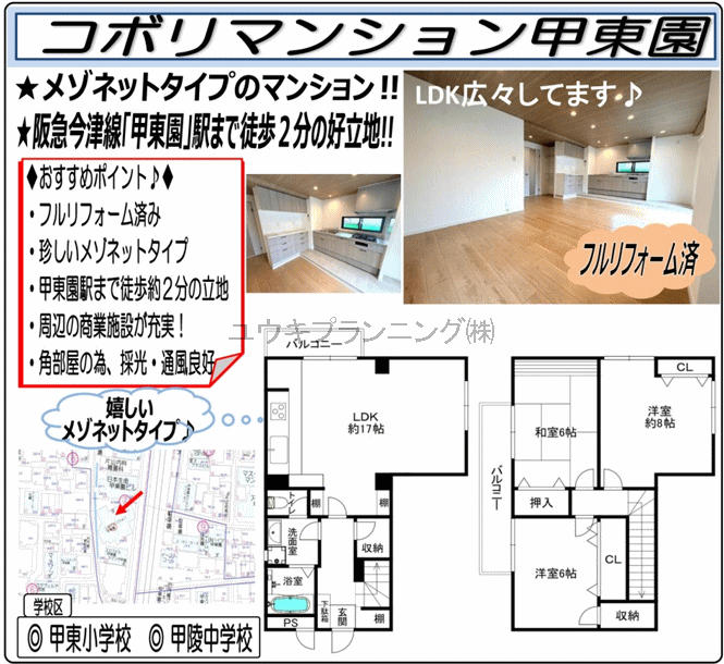 角部屋、メゾネットタイプ、日当たり良好、通風良好、リフォーム済。 |