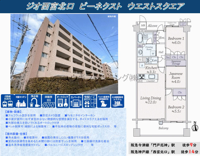 オートロック、南向き、阪急不動産の分譲マンション、スロップシンク付、ペット飼育可、徒歩圏内にスーパー有、最寄駅まで徒歩10分以内、門戸厄神駅歩9分です。 |