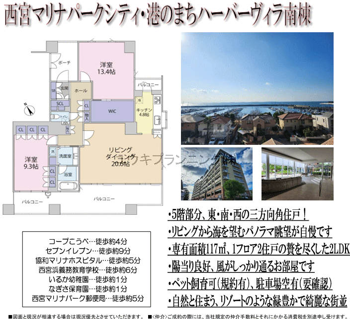 【西宮マリナパークシティ港のまちハーバーヴィラ】 西宮浜小学校・西宮浜中学校区、エレベータ、ウォークインクローゼット、総戸数50戸以上、ペット飼育可、ディスポーザー、オートロック、日当たり良好、床暖房有、食洗器、24時間有人管理、専用ポーチ付。 |