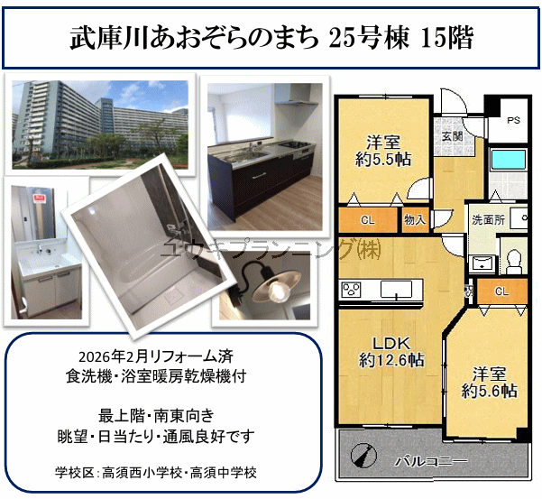 【武庫川あおぞらのまち25号棟】高須西小学校、高須中学校、リフォーム済、駐車場有、日当たり良好、通風良好、徒歩圏内にスーパー有、管理の行き届いたマンションです。