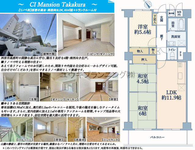【シーアイマンション高座】広田小学校、上ヶ原中学校、トランクルーム付、南西向き、日当たり良好。 |