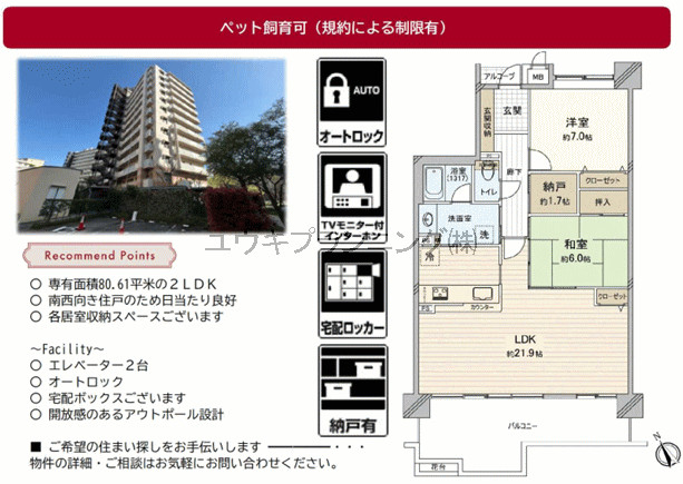 【西宮マリナパークシティ杜のまち2番館】西宮浜小学校、西宮浜中学校、ペット飼育可、専用ポーチ付、日当たり良好、通風良好、徒歩圏内にスーパー有、オートロック、室内大変綺麗にお使いです、総戸数50戸以上、駐車場有、西宮浜小学校まで350mです。 |