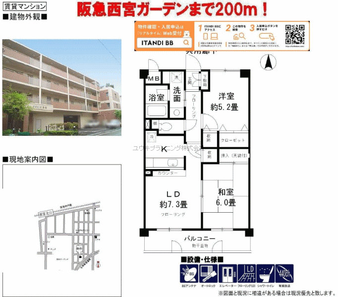 | コンビニ徒歩5や西宮北口駅前の商業施設まで徒歩圏内で生活面も安心です、充実設備も魅力です。 |