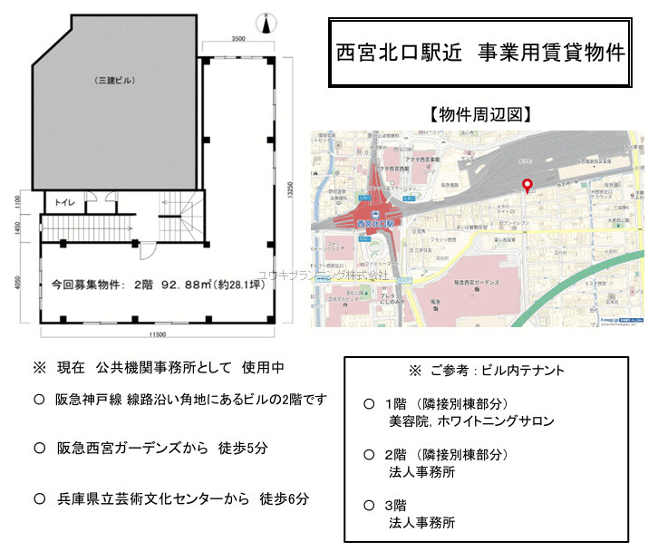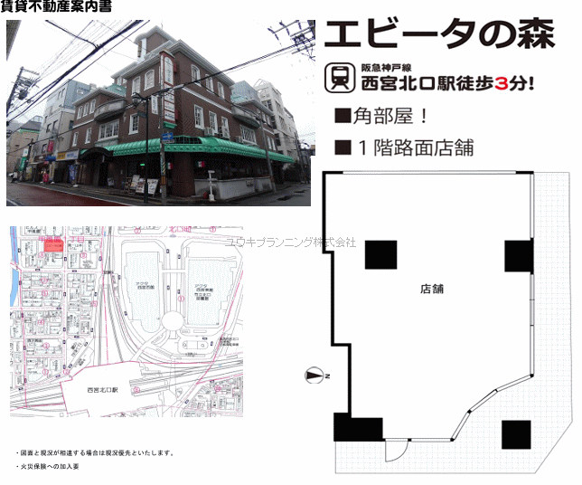 | 阪急西宮ガーデンズ徒歩2分等々商業施設が立ち並ぶ街並みの角地の物件です。集客も心配無です。 |