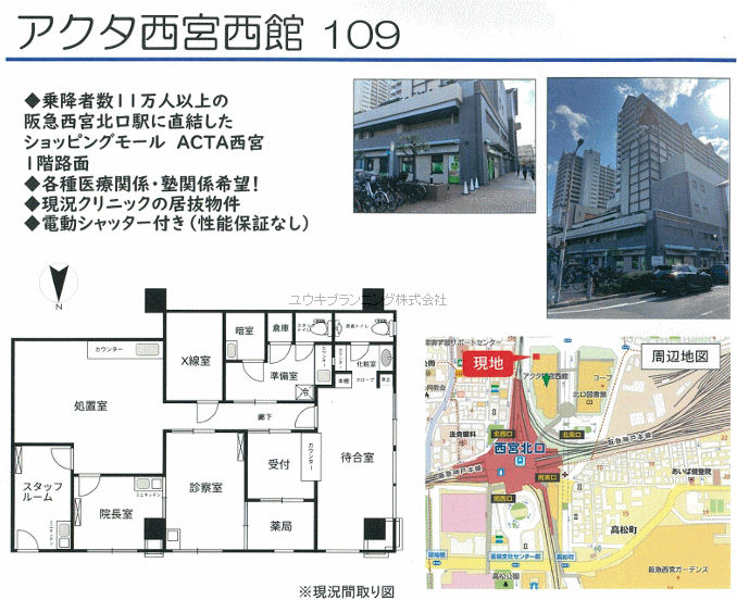 | 西宮北口駅近の店舗物件です。周辺は商業施設が立ち並ぶ環境です。 |