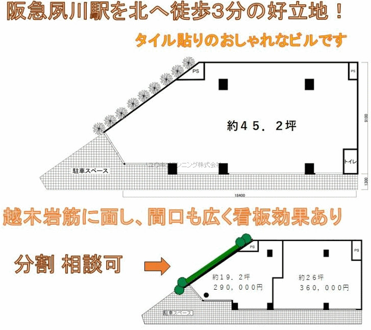 | 駅至近、駐車場、大通り面。 |