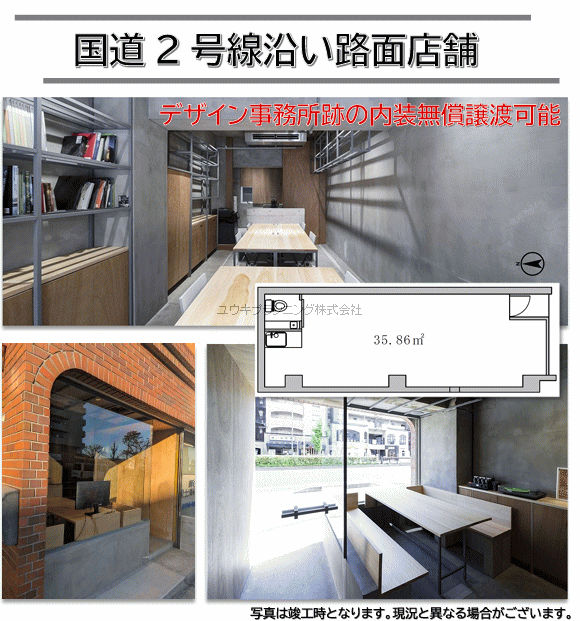 | 国道2号線に面す角地物件で大変よく目立ちます。 |