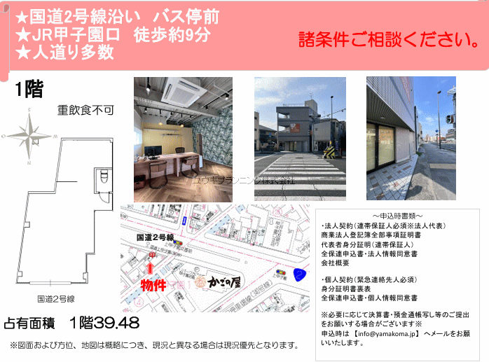 | 甲子園口商店街近くで周辺には商業施設も多く集客も良いですよ。 |