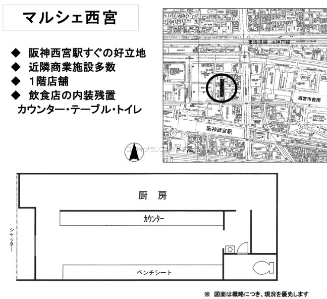 駅近。鳴尾御影線に面す大変よく目立つ物件です。 |
