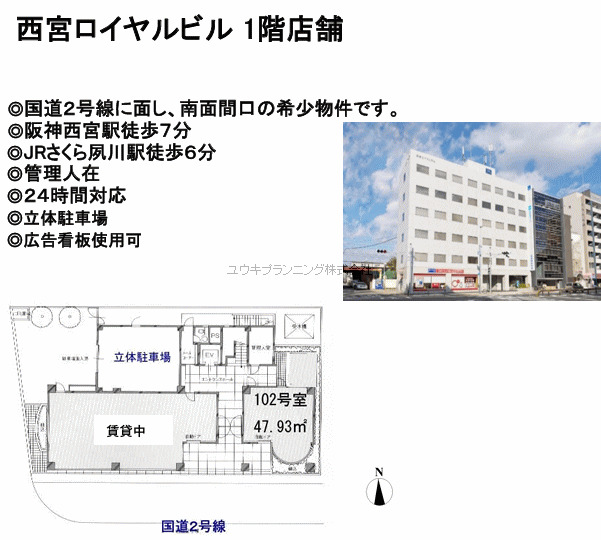 | 国道2号線に面す、駅近の物件です。阪神本線西宮駅とJR東海道線さくら夙川駅の2駅利用可能で便利です。 |