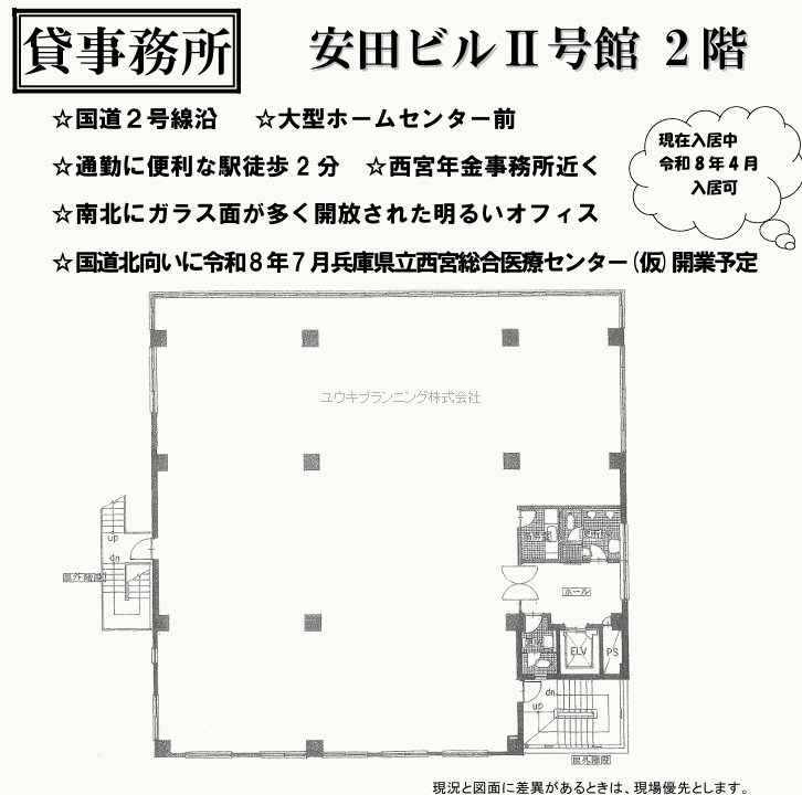 国道2号線に面す角地のビルです。大変良く目立つ立地です。周辺にはファミリーレストランやコンビ二やラーメン屋さん等も有り集客も良いですよ。