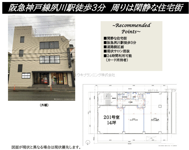 サロン居抜き物件、大通りに面す。