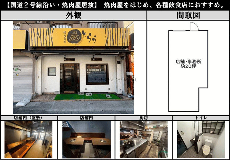 飲食可、大通り面、残置物有り。