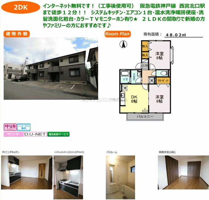 2面バルコニー!ペット飼育可!甲子園学院幼稚園徒歩2分と小さなお子様も安心です。閑静な住宅街。子育て環境も良好。 |