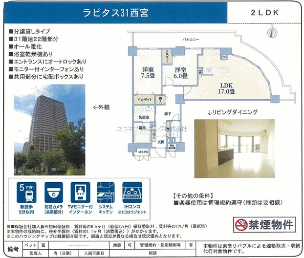 | 阪急西宮ガーデンズ徒歩5分。芸術劇場徒歩3分。充実設備の分譲貸マンションです。 |