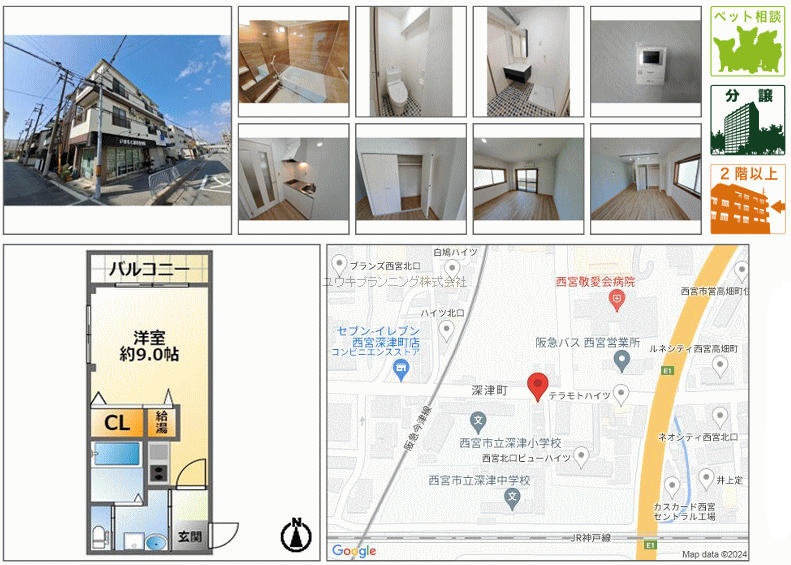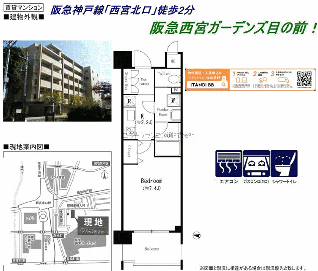 | 分譲貸、靜住街、阪急西宮ガーデンズ徒歩4分等々生活面は心配なしの好立地、関西学院生、神戸女学院生におすすめです。広々間取りのワンルームです。 |