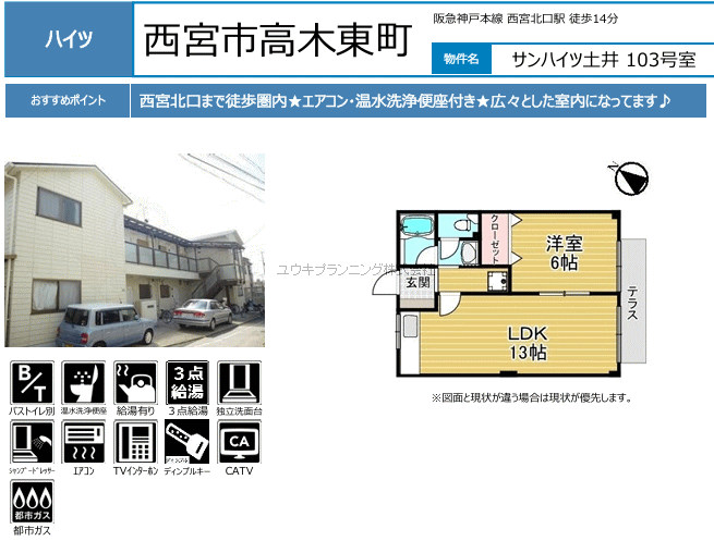 駅近!商業施設充実生活至便!生活施設が全て徒歩5分圏内、特にプレラ西宮徒歩1分、阪急西宮ガーデンズ徒歩2分等々休日のお買い物が楽しみです。関西学院生や神戸女学院生にもおすすめ物件。 大学まで自転車で12分と通学も安心です。 |