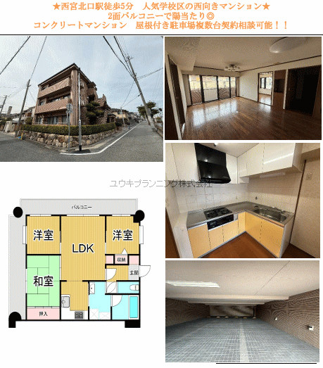 | 閑静な住宅地。生活施設は充実全てに便利な立地です。コープ徒歩3分。阪急西宮北口駅徒歩5分は希少物件です。生活施設は全て徒歩5分圏内に有り奥様のお買い物等全く心配無しです。 |