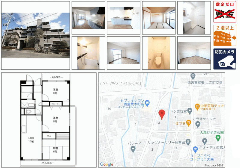 | 阪急西宮北口駅エリアで人気の立地、コンビニやファミリーレストラン等徒歩5分圏内に有り生活便利な立地。 |