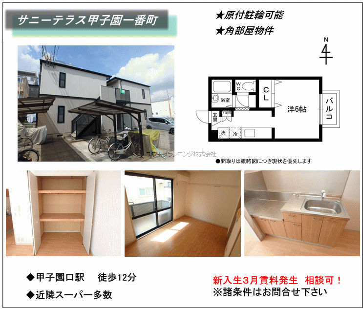 JR東海道線 甲子園口駅 徒歩15分 |