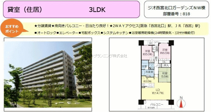 新婚様にもお奨めできる充実設備のマンションです。徒歩5分圏内にコンビニやスーパー等々全て揃っています。 人気の高木小学校・瓦木中学校校区で子育て環境も良いですよ |